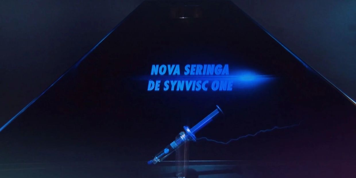 O desafio era apresentar a nova caneta de Synvisc One de uma maneira que chamasse atenção do público para os detalhes e inovações do produto. Com o display holográfico foi possível destacar a caneta que permaneceu iluminada dentro do display e ainda mostrar em animação todos os detalhes necessários.